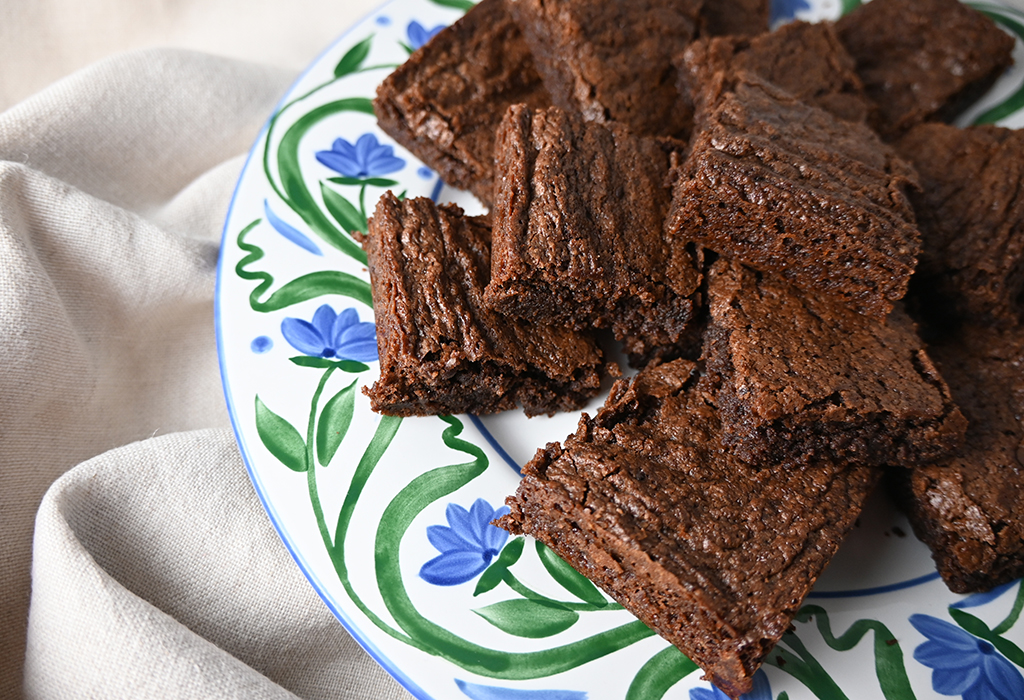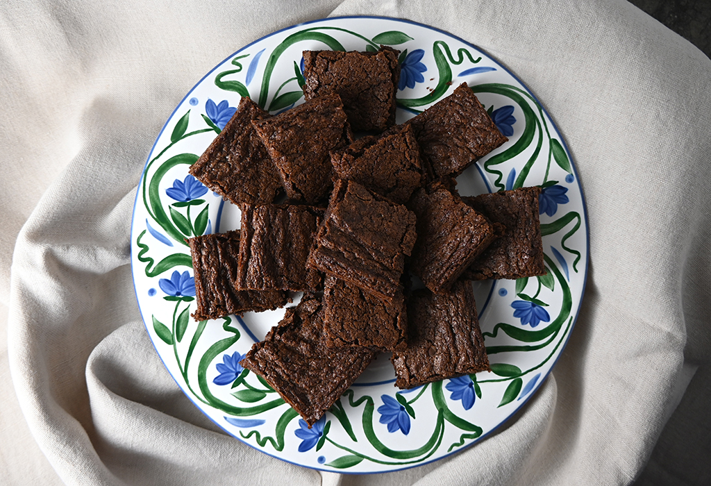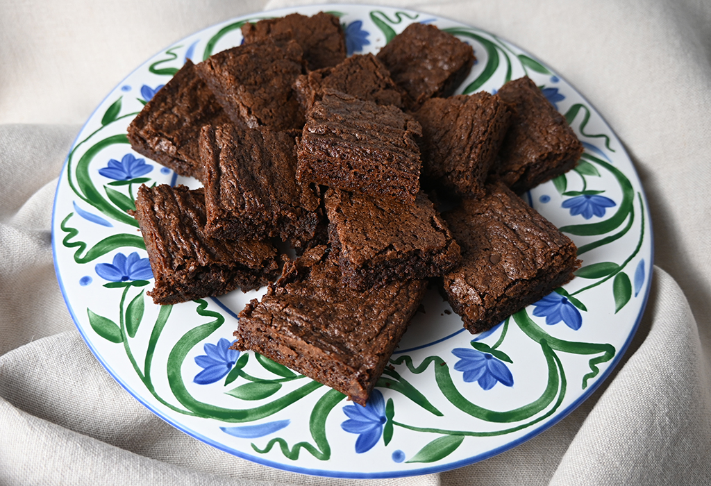 This recipe is good for a crowd. I cut the brownies into 2-inch squares, which gives you 24, but you could cut them much smaller and get many more from the batch. I make them very fudgy; if you like them more cake-like, leave them in the oven a little longer.